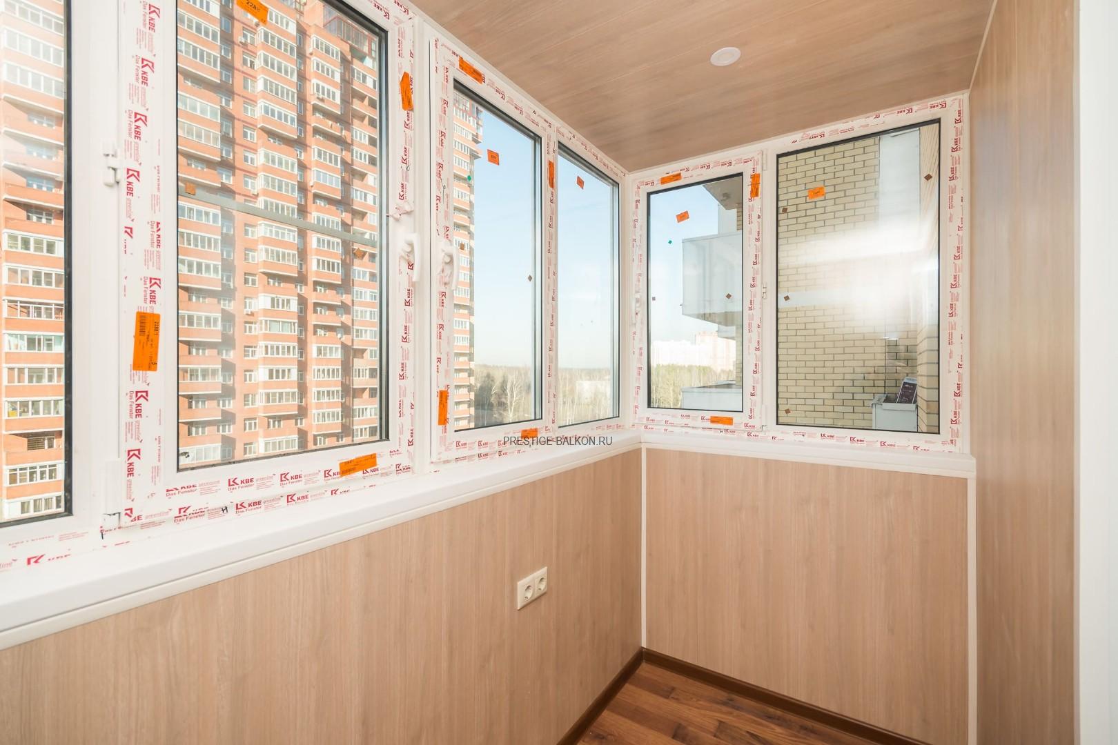 Работа "под ключ" - остекление, утепление и отделка балкона немецким профилем KBE Expert 70 мм с двухкамерным стеклопакетом.